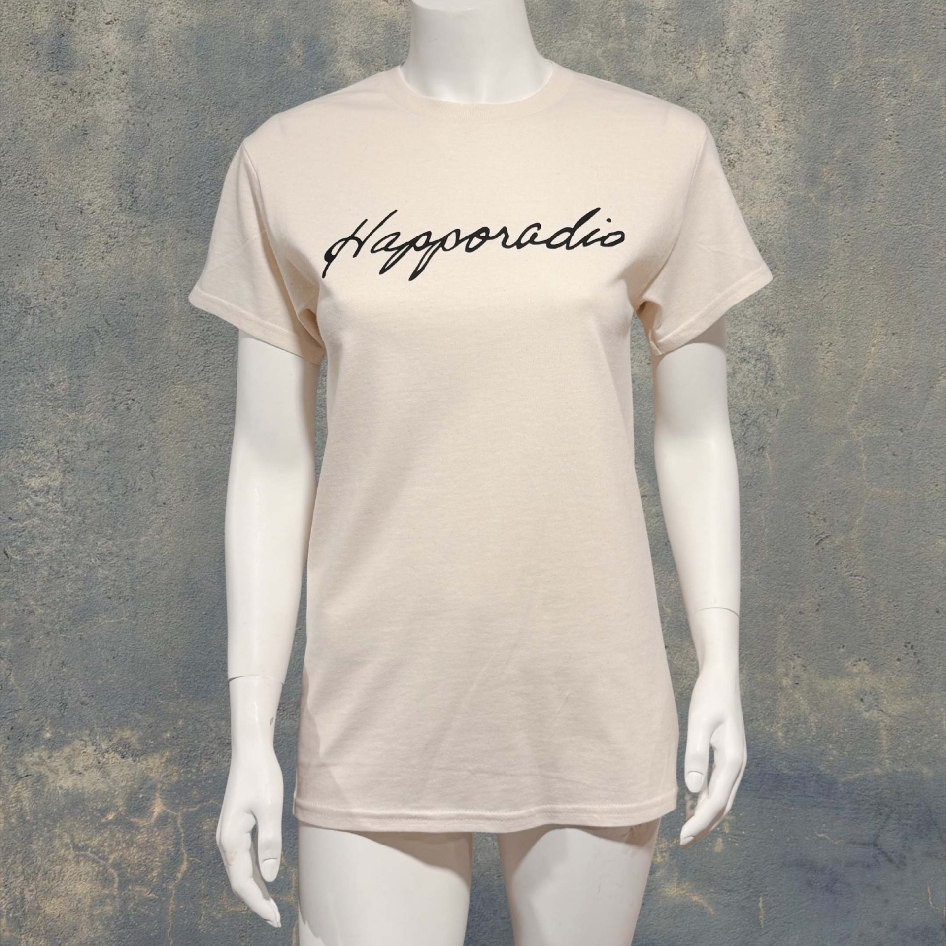 T-paita HAPPORADIO luonnonvalkoinen Iso kaunokirjoitus